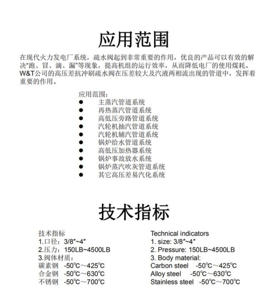 维替河南提供的抗冲刷高压差疏水调节阀严格技照ASMEB1634标准设计,阀门通径和喉部直径均与管道直径一致;阀体采用整体自由锻造,阀体的强度高,结构美观。